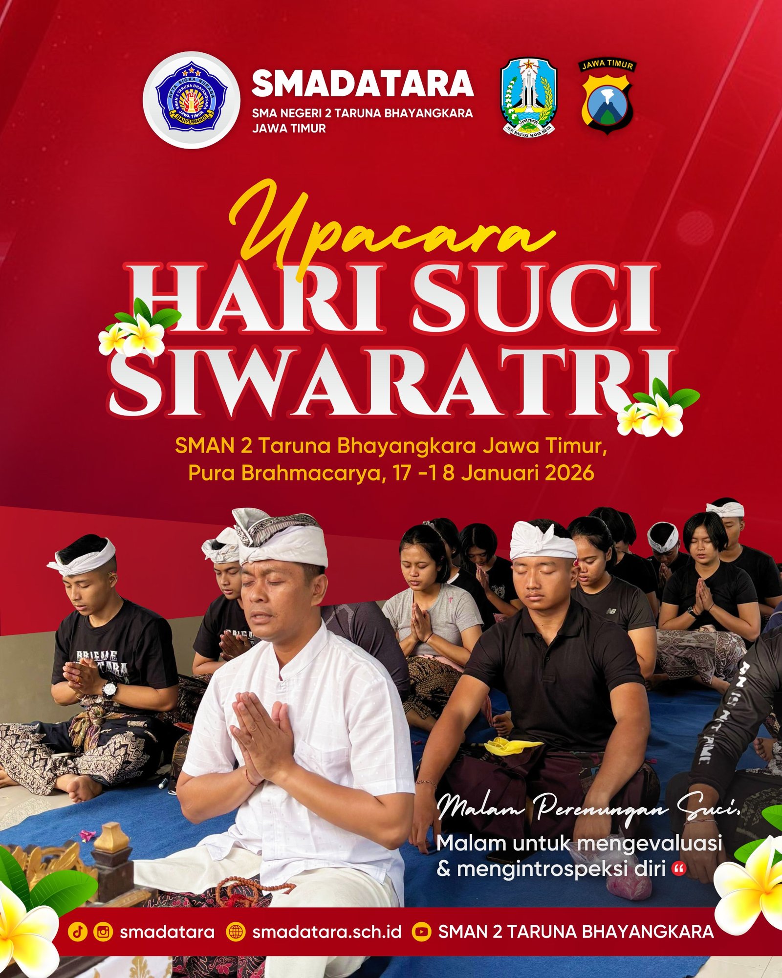 Read More: SMAN 2 Taruna Bhayangkara Selenggarakan Upacara Hari Suci SiwaratriSMAN 2 Taruna Bhayangkara Jawa Timur mengadakan upacara peringatan Hari Suci Siwaratri bagi taruna dan taruni yang menganut agama Hindu. Kegiatan ini dilaksanakan di Pura…