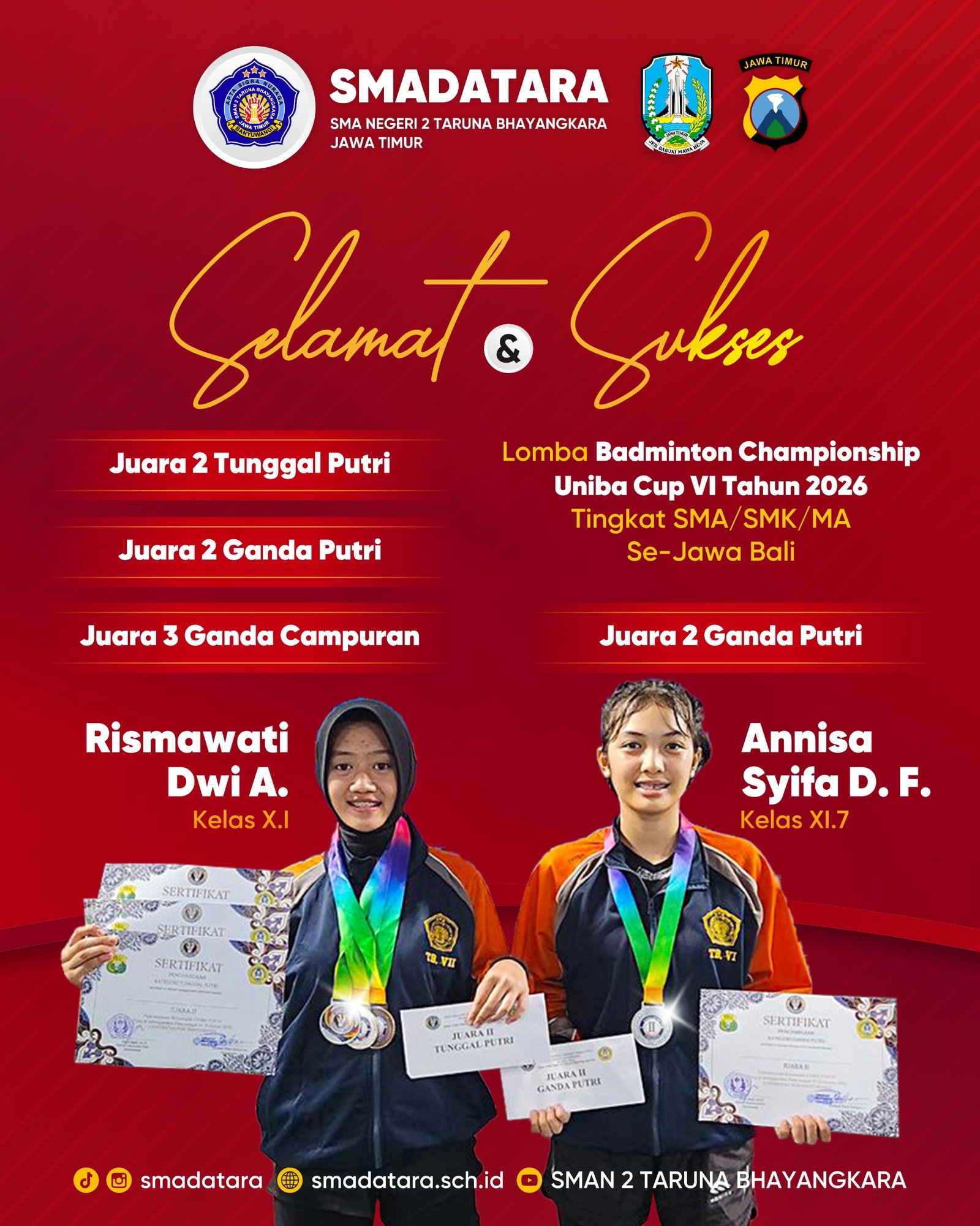 Prestasi Gemilang Taruni SMAN 2 Taruna Bhayangkara di Badminton Championship UNIBA Cup VI 2026
