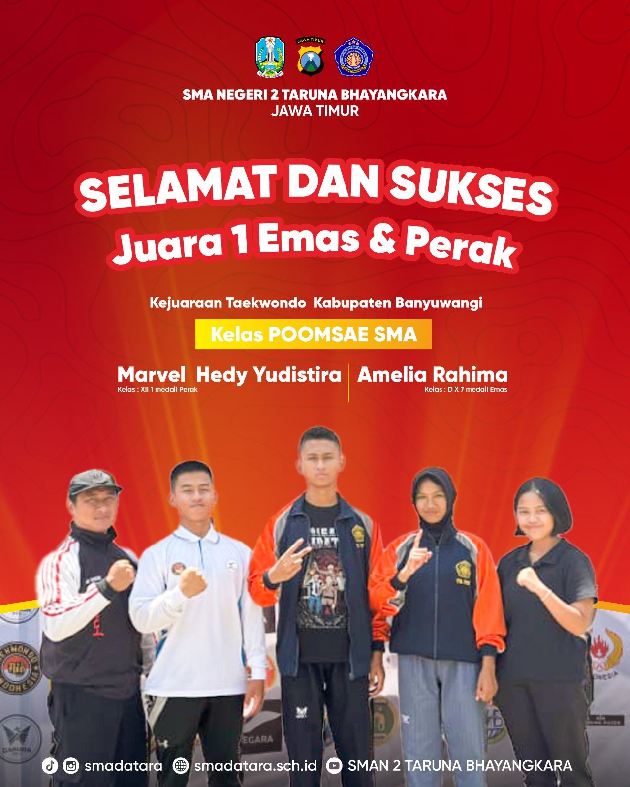 Taruna SMAN 2 Taruna Bhayangkara Raih Medali Emas dan Perak di Kejuaraan Taekwondo Kabupaten Banyuwangi
