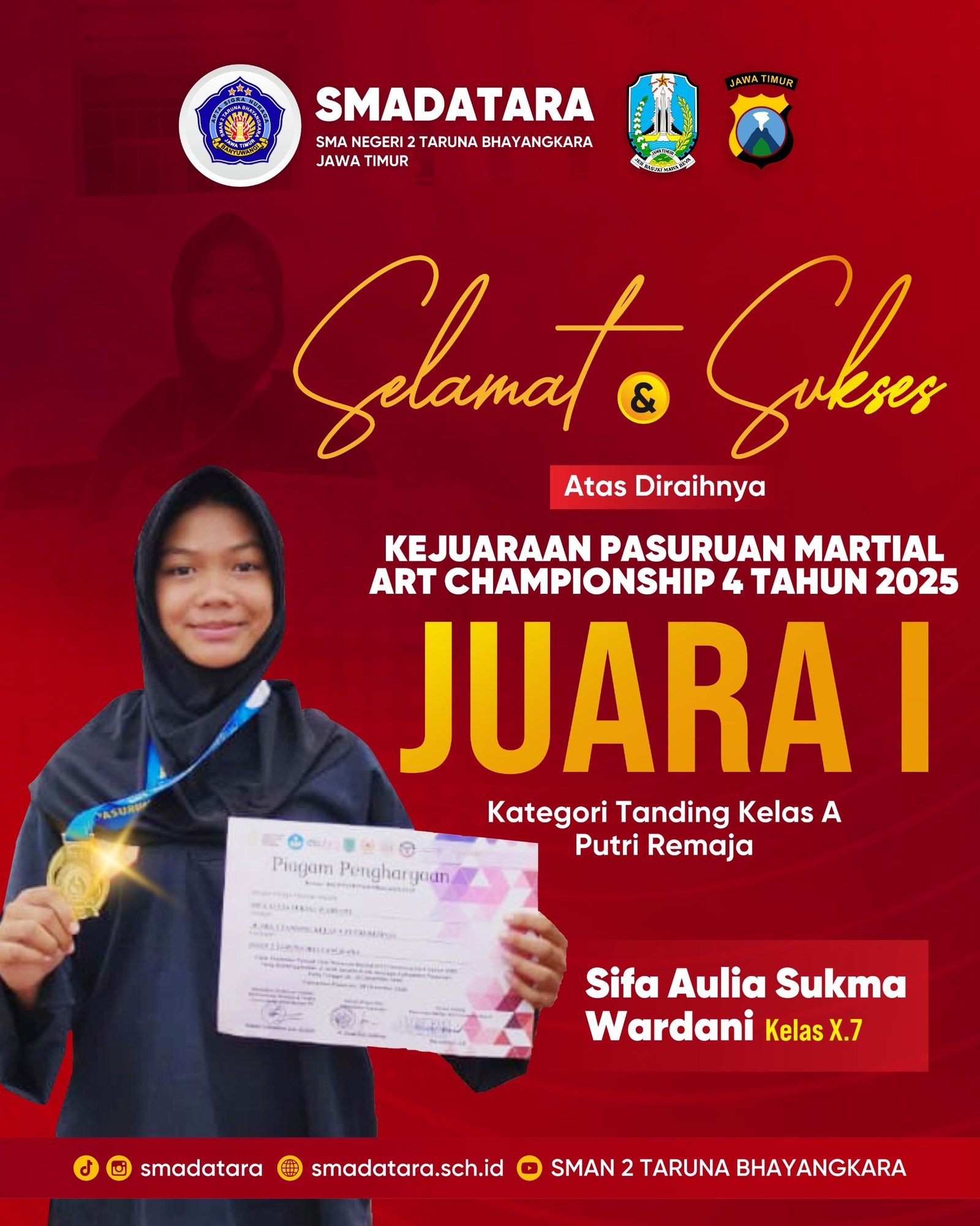 SMAN 2 Taruna Bhayangkara Jawa Timur mengucapkan selamat dan sukses kepada taruni Sifa Aulia Sukma Wardani atas prestasi membanggakan yang…