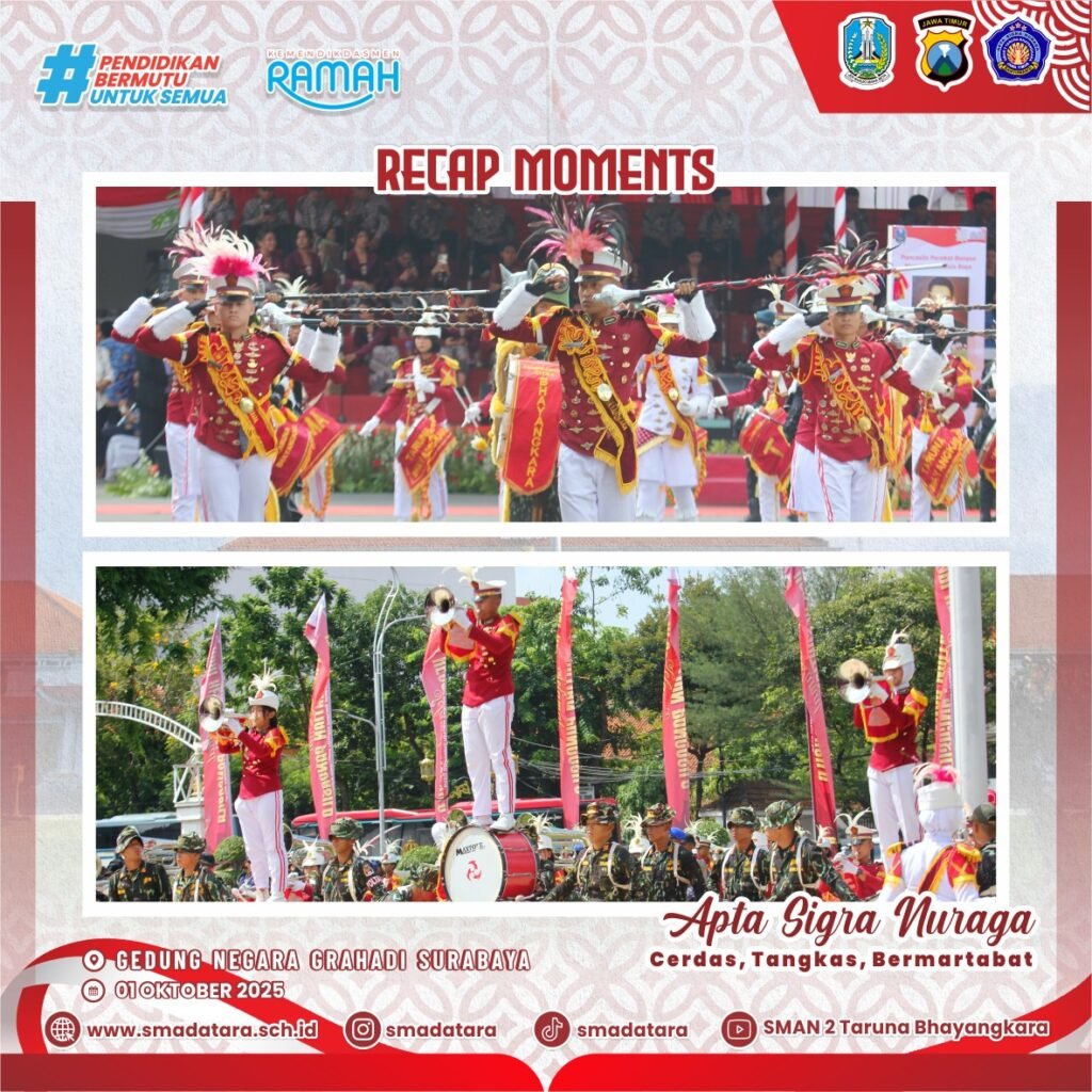 Penampilan memukau ditunjukkan Drum Corps Adhi Pramana Citra Bhayangkara dalam rangkaian Upacara Peringatan Hari Kesaktian Pancasila 2025 yang digelar di Gedung Negara Grahadi, Surabaya, Rabu (1/10).