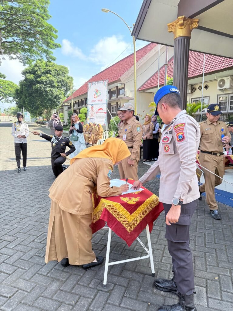 Adapun perlengkapan yang diserahkan meliputi 16 unit snare drum, 24 unit bass drum, 20 unit tenor drum, 5 pasang cymbal, 8 buah mayoret stick, 14 unit bellyra, 40 unit alat tiup, seragam dan aksesoris drumband, bendera formasi, serta peralatan pendukung lainnya. Penyerahan ini bukan sekadar kegiatan simbolik, melainkan juga bentuk pengalihan tanggung jawab, perawatan, dan penggunaan seluruh perlengkapan drumband guna mendukung kelancaran kegiatan ekstrakurikuler Drumcorps Adhipramana Citra Bhayangkara di lingkungan SMAN 2 Taruna Bhayangkara Jawa Timur.