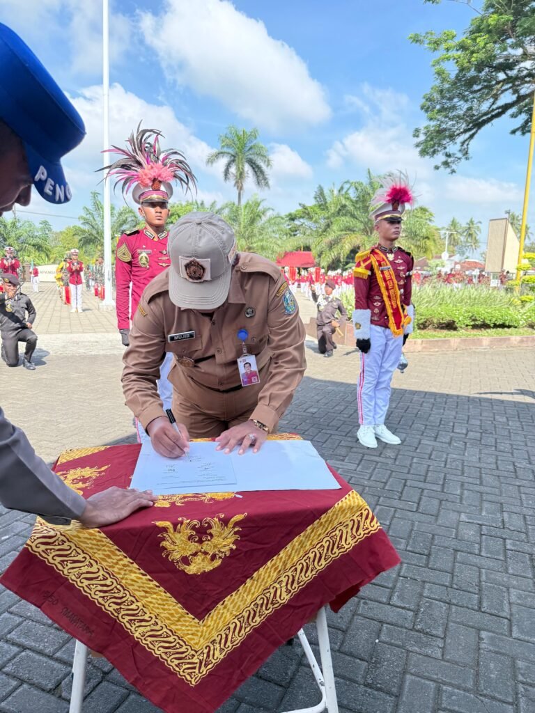 Dalam suasana penuh khidmat dan kebersamaan, perwakilan TB 5 menyerahkan alat secara simbolis kepada TB 6 disertai pesan agar senantiasa menjunjung tinggi nilai kedisiplinan, tanggung jawab, dan semangat juang yang telah diwariskan.
