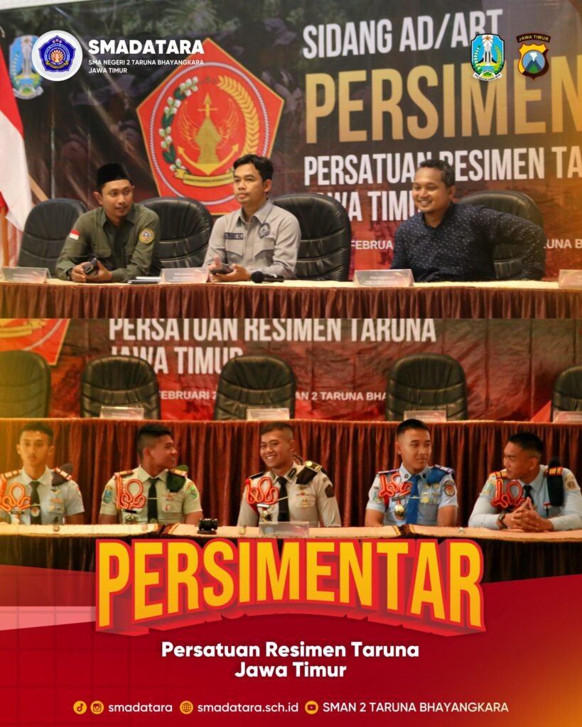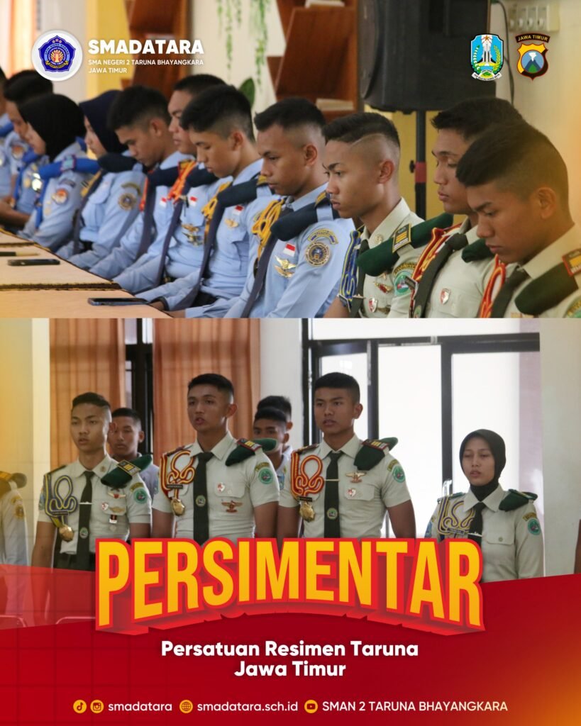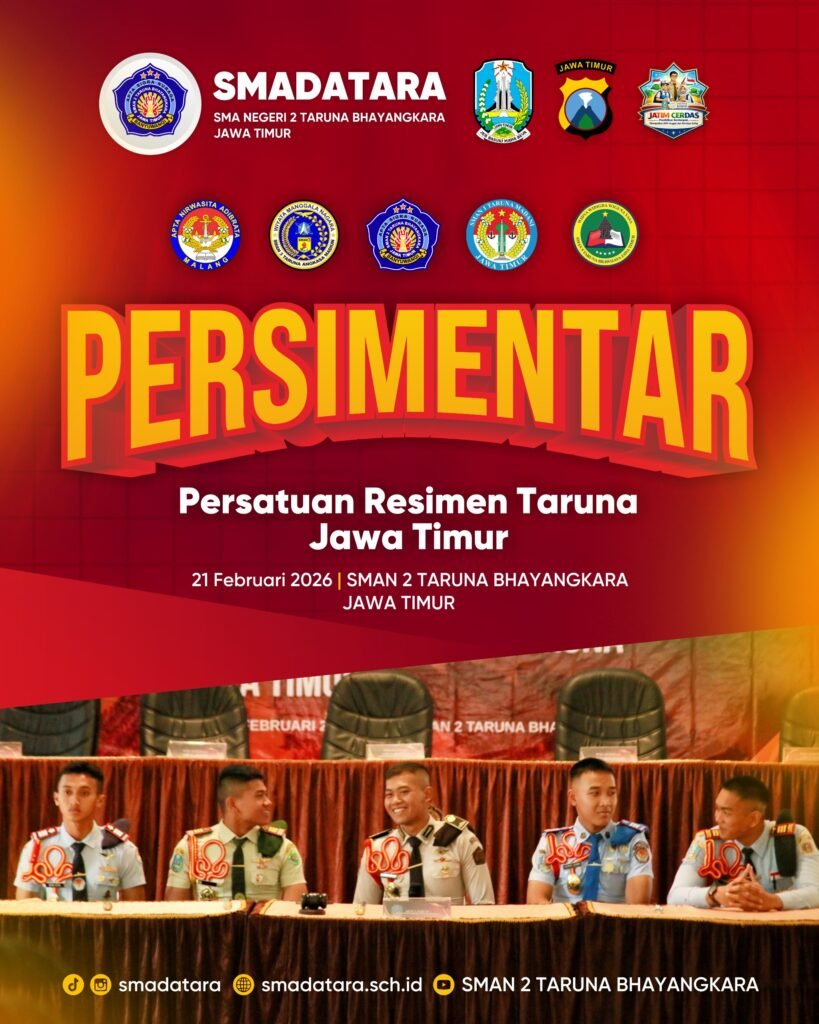 Semangat persatuan dan jiwa kepemimpinan taruna terpancar dalam kegiatan PERSIMENTAR (Persatuan Resimen Taruna) Jawa Timur yang diselenggarakan pada 21 Februari 2026 di SMAN 2 Taruna Bhayangkara Jawa Timur. Kegiatan ini menjadi momentum penting untuk mempererat kebersamaan antarresimen, menumbuhkan solidaritas, serta membangun karakter kepemimpinan generasi muda taruna Jawa Timur.