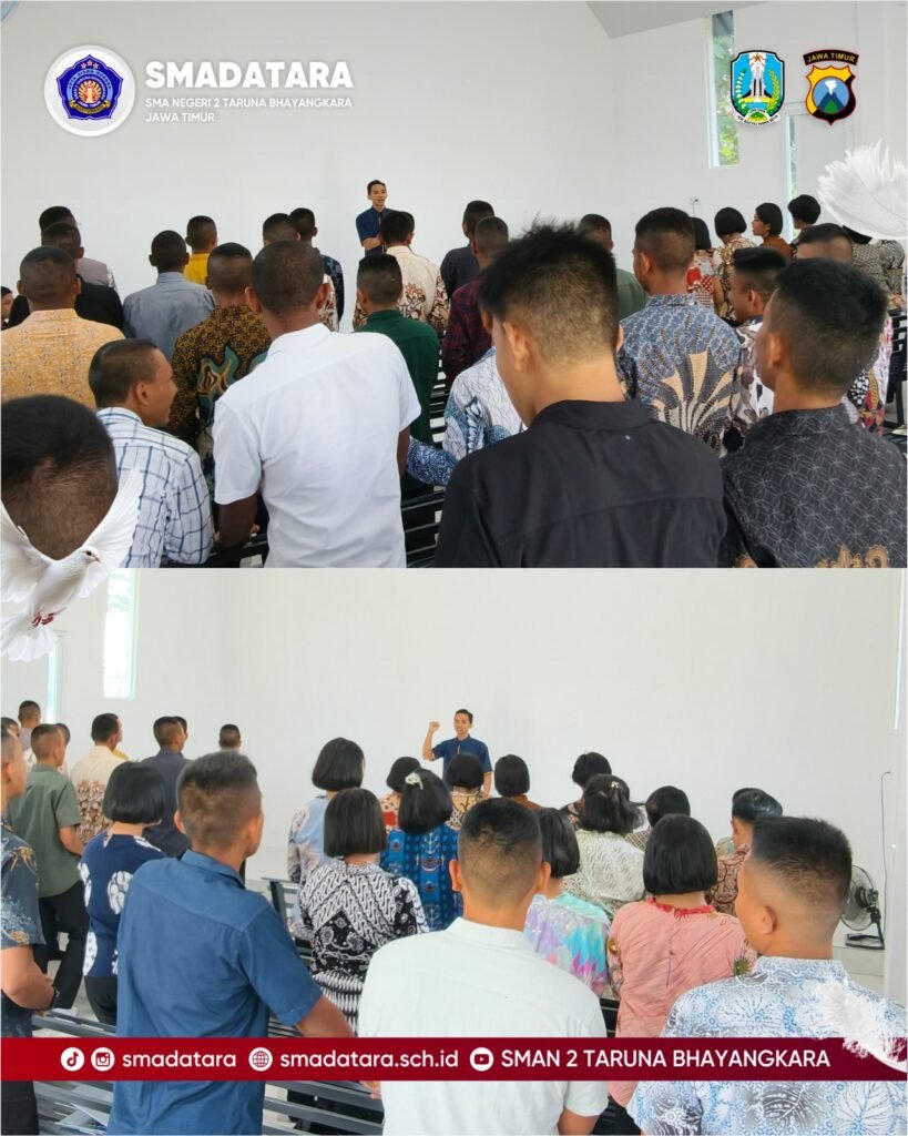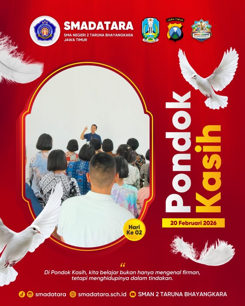 Memasuki hari kedua kegiatan Pondok Kasih di SMAN 2 Taruna Bhayangkara Jawa Timur, para peserta semakin diajak memperdalam pemahaman firman Tuhan serta merefleksikannya dalam kehidupan nyata. Melalui pembinaan rohani, motivasi, dan kebersamaan, taruna dibimbing untuk menumbuhkan iman, memperkuat karakter, serta menghidupi nilai kasih dalam sikap dan tindakan sehari-hari.