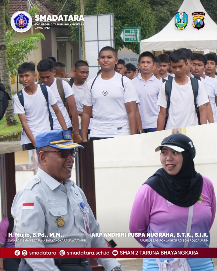 Para calon taruna dan taruni mengikuti serangkaian tes fisik dengan tertib dan penuh semangat. Pelaksanaan tes kesehatan jasmani ini dipantau secara langsung oleh AKP Andhini Puspa Nugraha, S.T.K., S.I.K. selaku PAURSUBBAG ROHJASHOR RO SDM POLDA JATIM, KOMPOL Achmad Ali Masduki, S.H., M.H. selaku Koordinator Pengasuh SMAN 2 Taruna Bhayangkara, serta IPDA Edi Hariyanto, S.H. selaku Wakil Koordinator Pengasuh SMAN 2 Taruna Bhayangkara Jawa Timur. Turut hadir dan melakukan pemantauan langsung, Kepala Satuan Pendidikan SMAN 2 Taruna Bhayangkara Jawa Timur, H. Mujib, S.Pd., M.M., yang memastikan seluruh rangkaian seleksi berjalan sesuai prosedur, transparan, serta menjunjung tinggi prinsip objektivitas dan integritas.