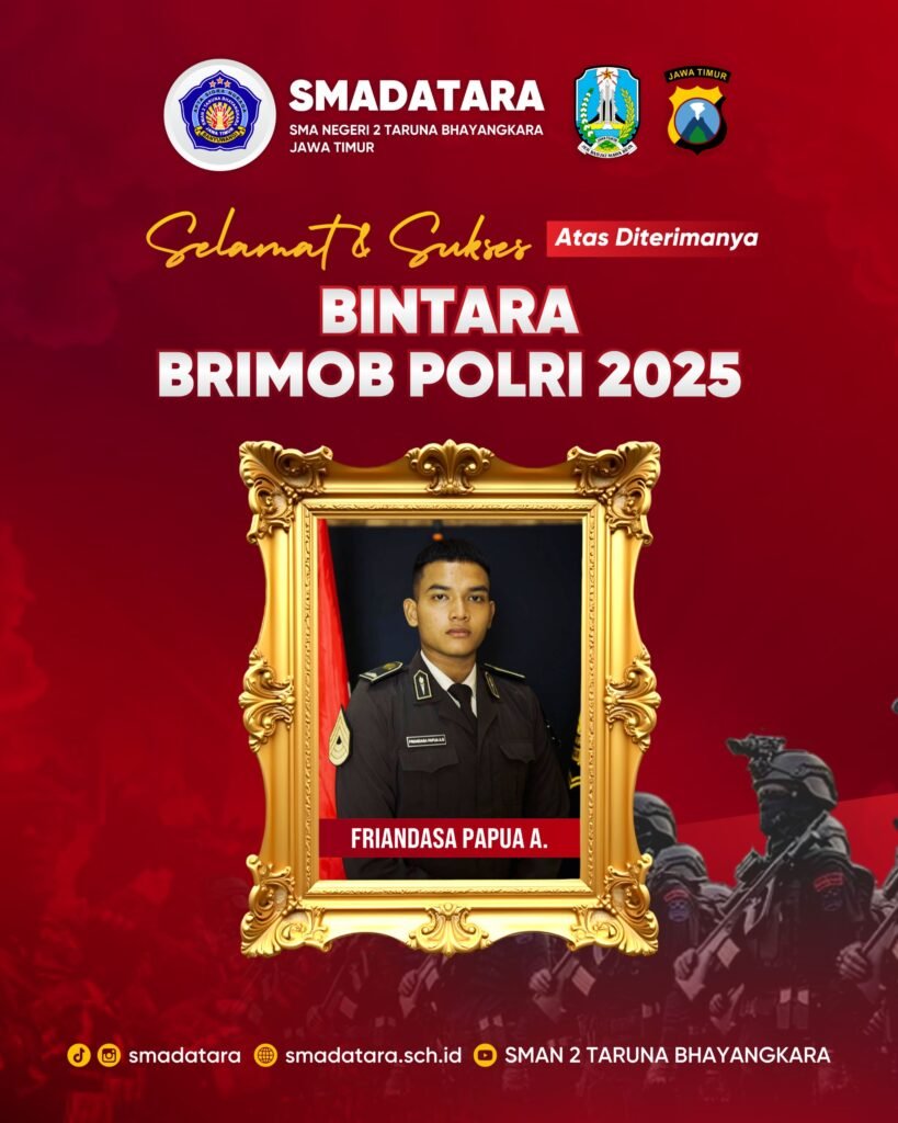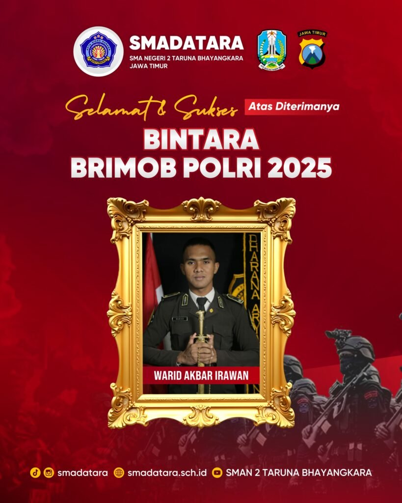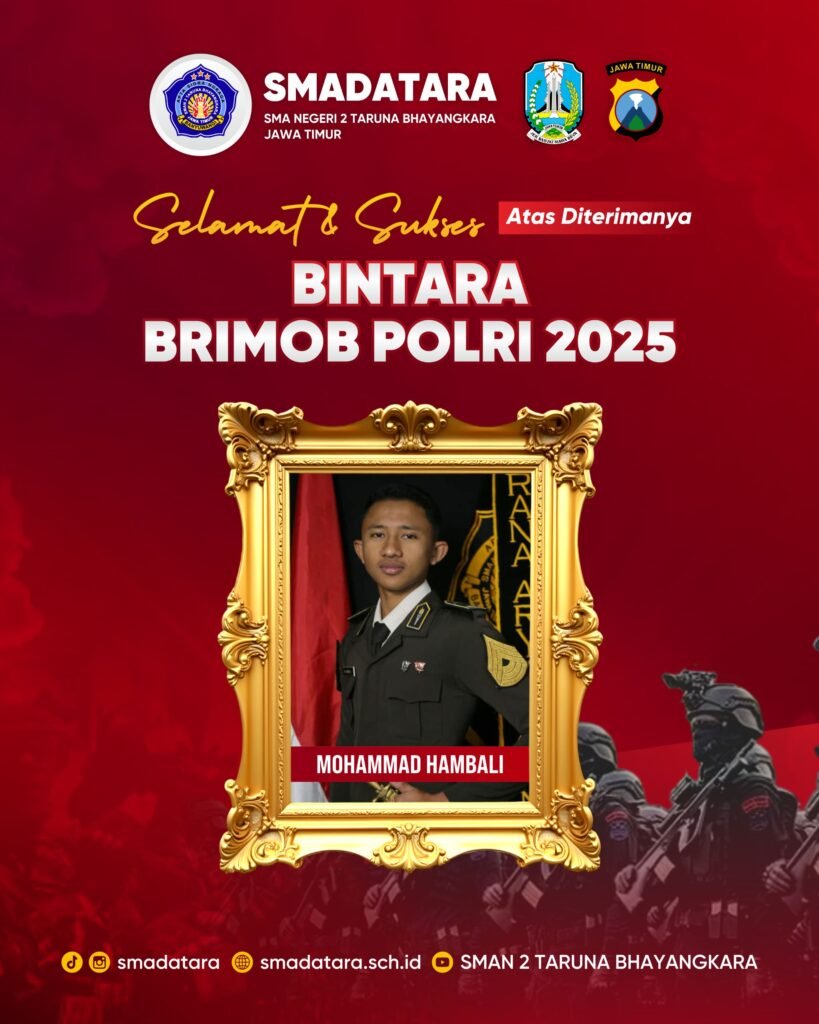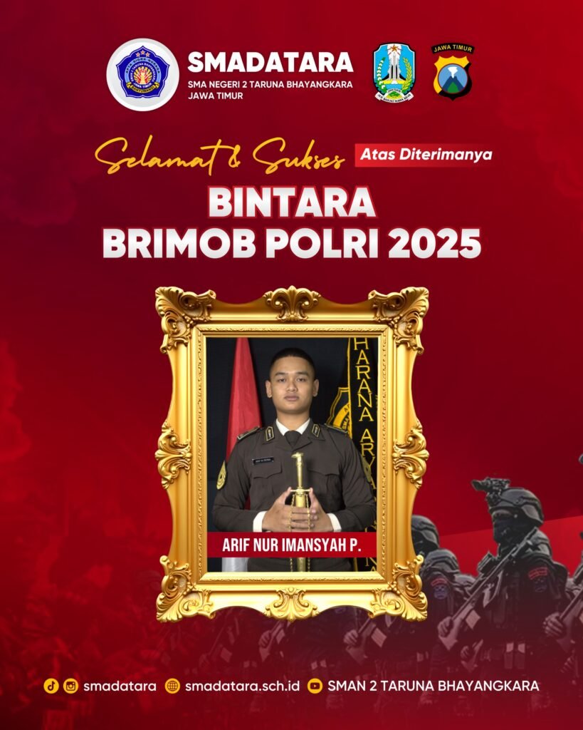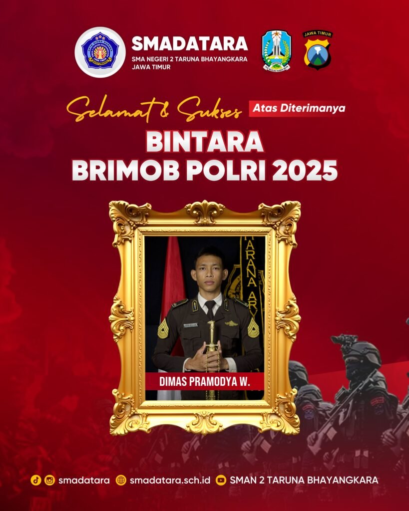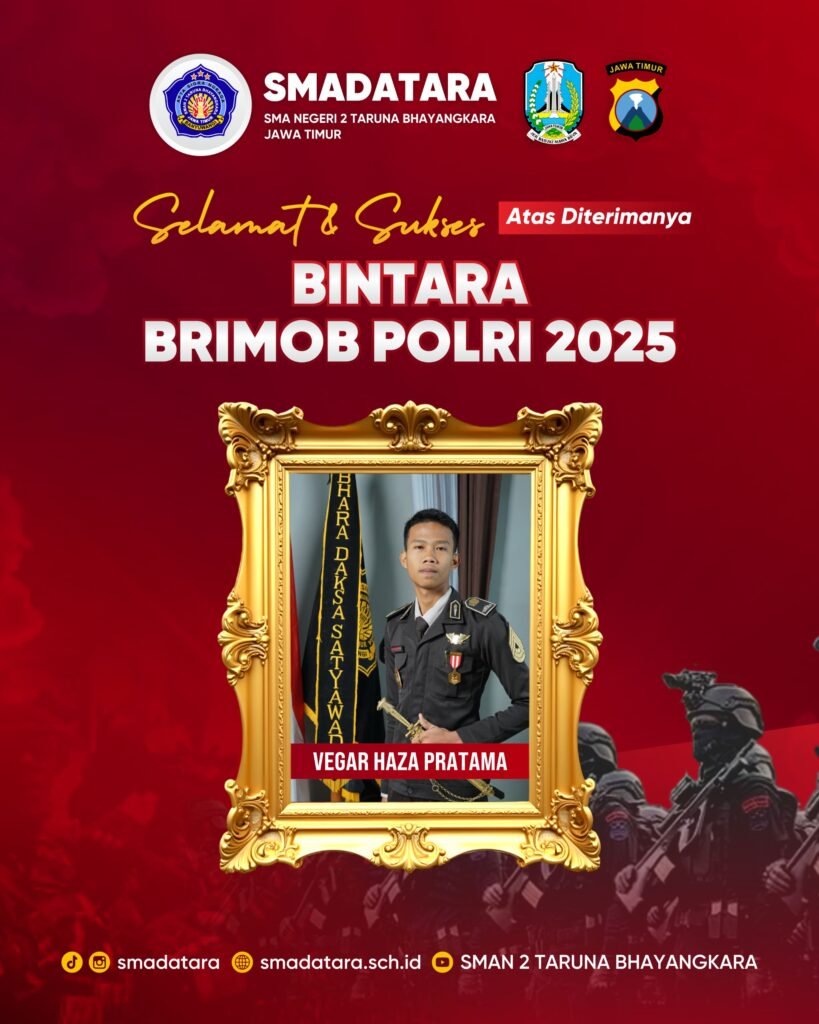 Keluarga besar SMAN 2 Taruna Bhayangkara Jawa Timur tengah diselimuti rasa bangga yang luar biasa. Sekolah berbasis kedisiplinan dan kepolisian ini kembali membuktikan kualitas pendidikannya dengan keberhasilan 8 Taruna terbaiknya yang dinyatakan lulus dan diterima sebagai Bintara BRIMOB POLRI Tahun Anggaran 2025.