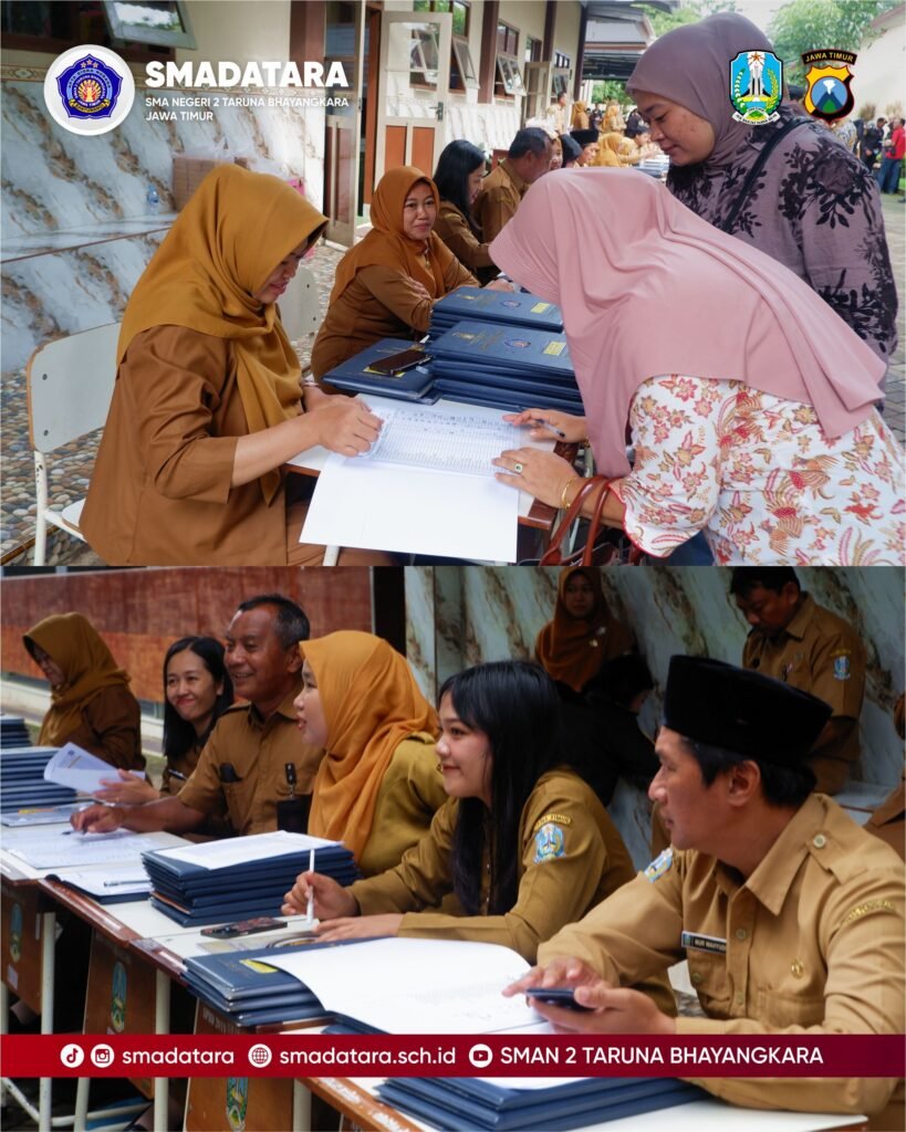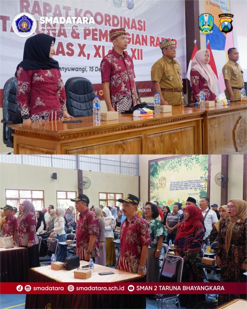 SMAN 2 Taruna Bhayangkara Jawa Timur mengadakan rapat koordinasi bersama wali taruna yang dirangkaikan dengan pembagian rapor Semester Ganjil untuk kelas X, XI, dan XII. Kegiatan ini dilaksanakan di Aula Cakrabuana dan diikuti dengan antusias oleh para wali taruna.
