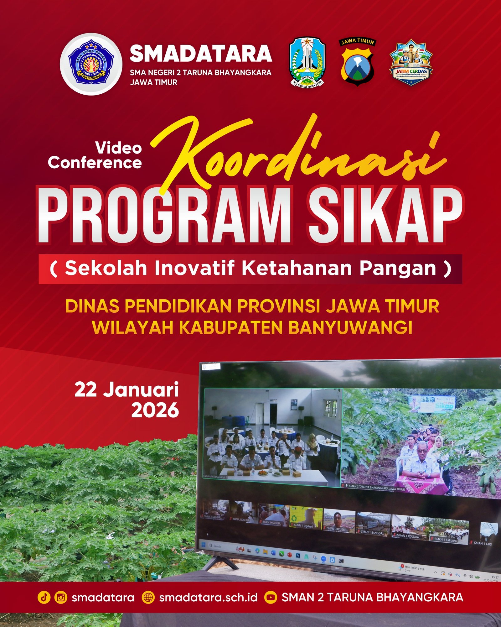 SMAN 2 Taruna Bhayangkara Jawa Timur mengikuti kegiatan Koordinasi Program SIKAP (Sekolah Inovatif Ketahanan Pangan) yang diinisiasi oleh Dinas Pendidikan Provinsi Jawa Timur Wilayah Kabupaten Banyuwangi. Kegiatan ini menjadi bagian dari upaya memperkuat peran satuan pendidikan dalam mendukung ketahanan pangan melalui pemanfaatan potensi yang dimiliki sekolah.