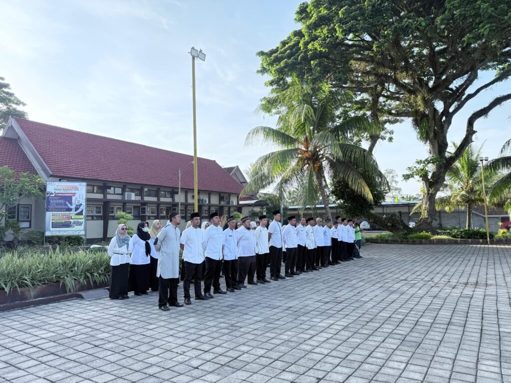 Pada momen bersejarah ini, jajaran guru dan tenaga pendidik tampil kompak mengenakan busana muslim, menambah suasana religius dan kekhidmatan dalam pelaksanaan upacara. Sementara itu, para taruna-taruni mengikuti kegiatan dengan tertib dan penuh rasa hormat terhadap nilai perjuangan para santri yang telah berkontribusi besar bagi kemerdekaan Indonesia.
