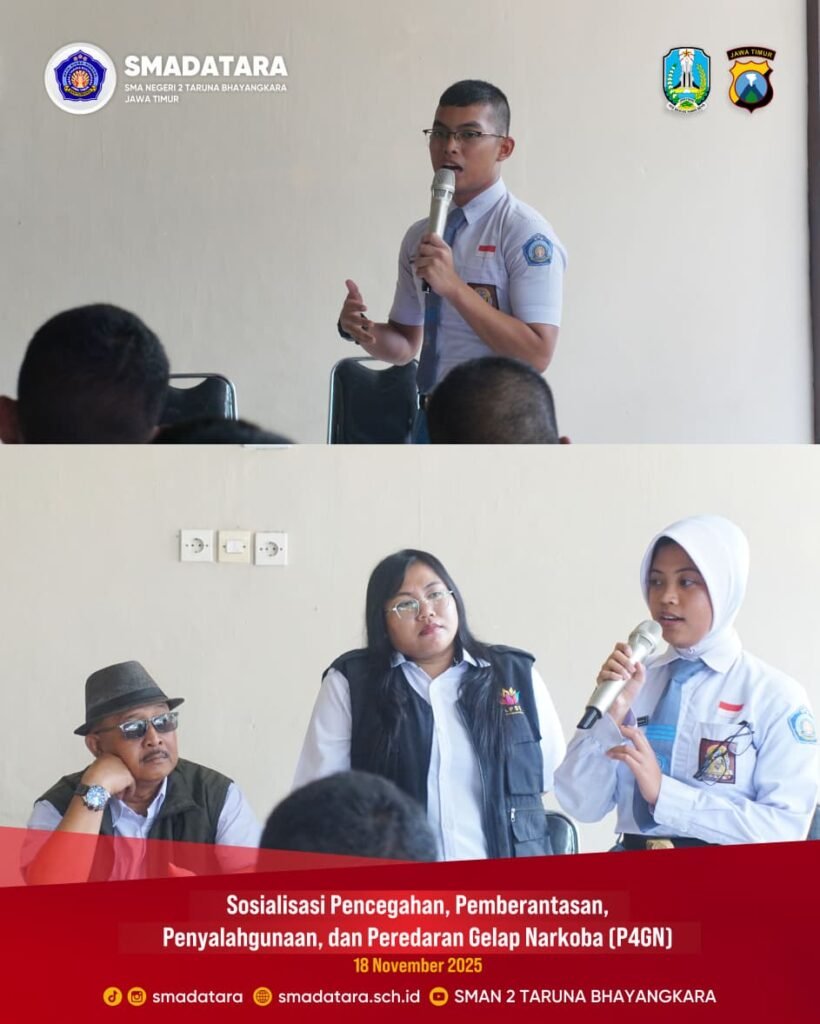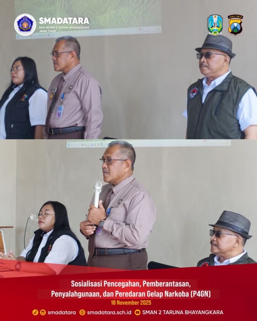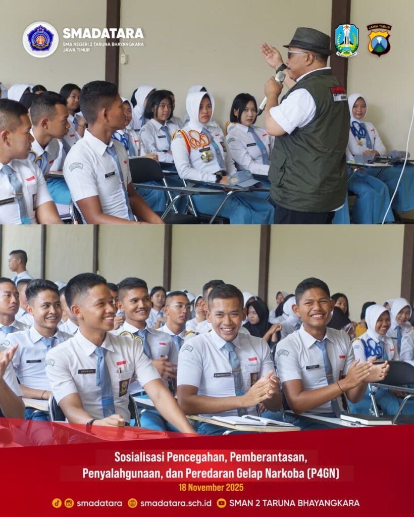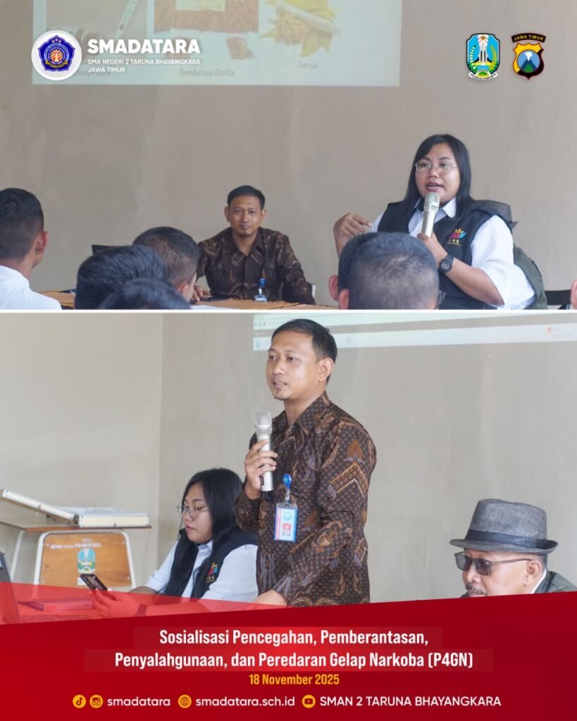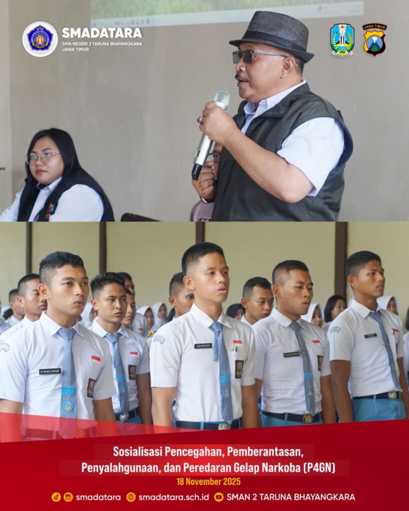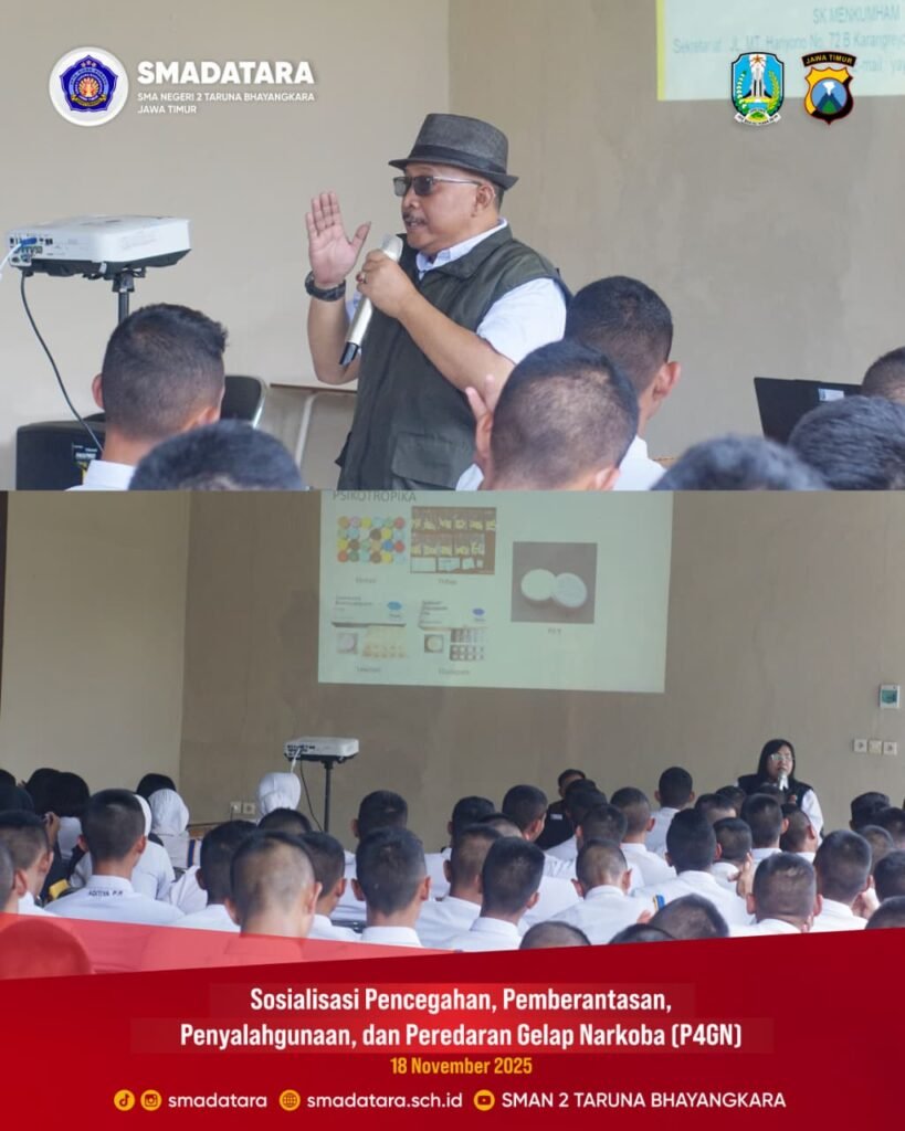 SMAN 2 Taruna Bhayangkara Jawa Timur kembali menunjukkan komitmennya dalam mendukung upaya pencegahan penyalahgunaan narkoba dengan menyelenggarakan kegiatan Sosialisasi Pencegahan, Pemberantasan, Penyalahgunaan, dan Peredaran Gelap Narkoba (P4GN). Kegiatan ini menggandeng BNN Kabupaten Banyuwangi sebagai narasumber utama.