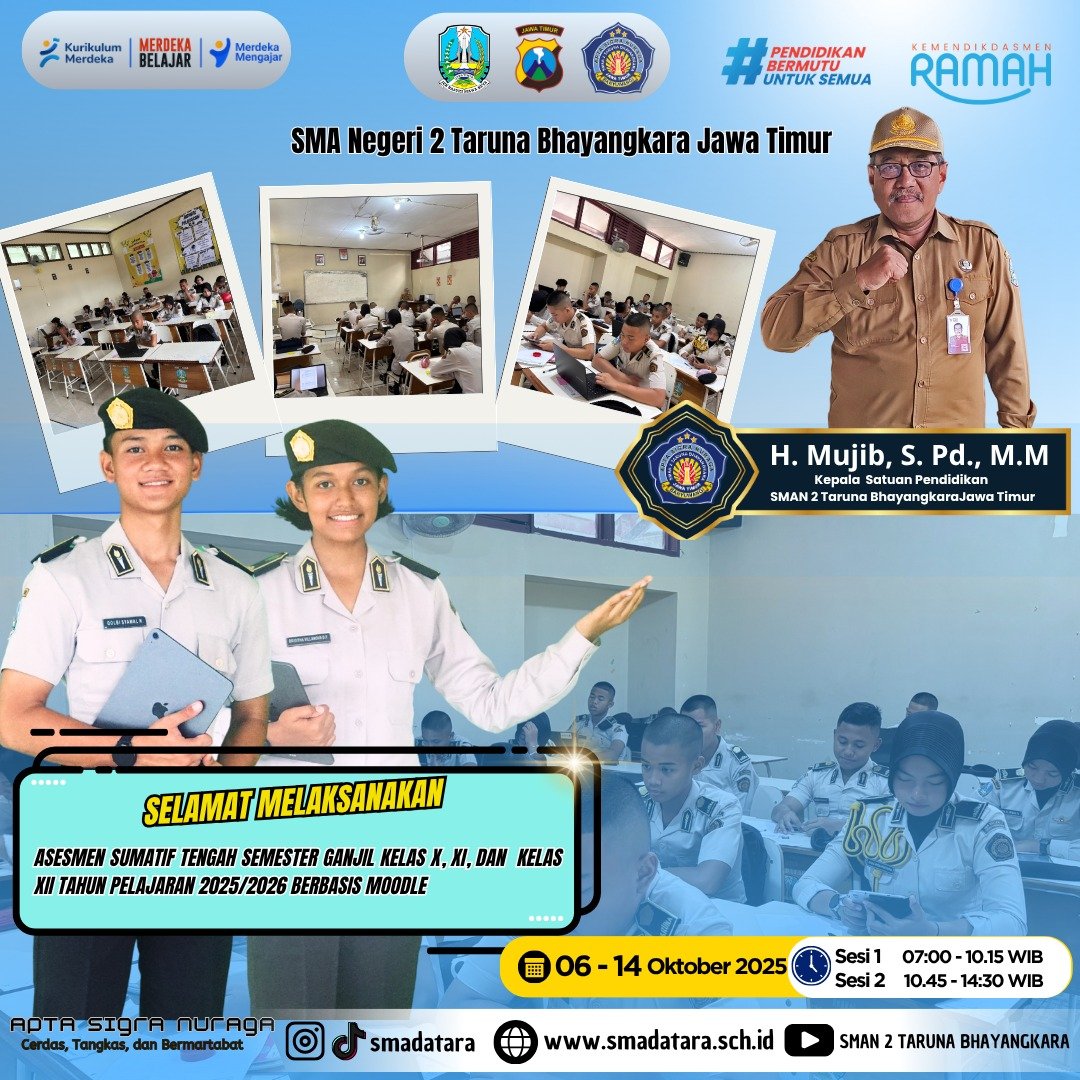 SMAN 2 Taruna Bhayangkara Jawa Timur melaksanakan Asesmen Sumatif Tengah Semester (ASTS) Ganjil Tahun Pelajaran 2025/2026 bagi seluruh taruna-taruni kelas…