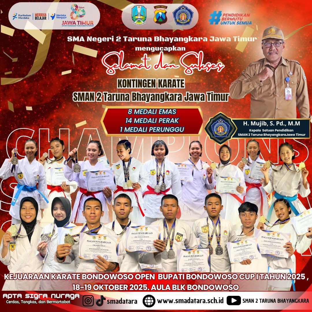 Taruna-Taruni SMAN 2 Taruna Bhayangkara Jatim Borong Juara di Kejuaraan Karate Bondowoso Open Bupati Cup I 2025