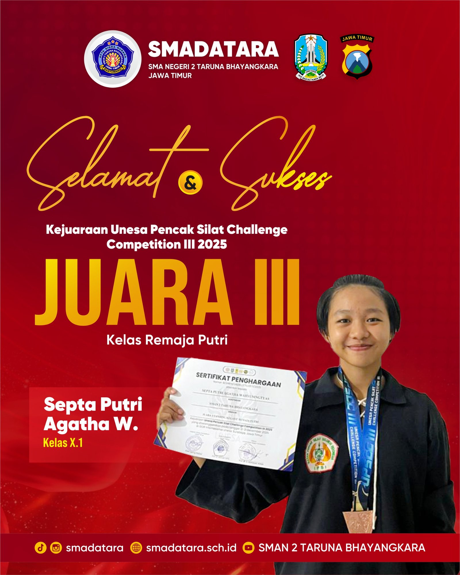 Keluarga besar SMAN 2 Taruna Bhayangkara Jawa Timur menyampaikan ucapan selamat dan apresiasi kepada Taruni Septa Putri Agatha W. atas…