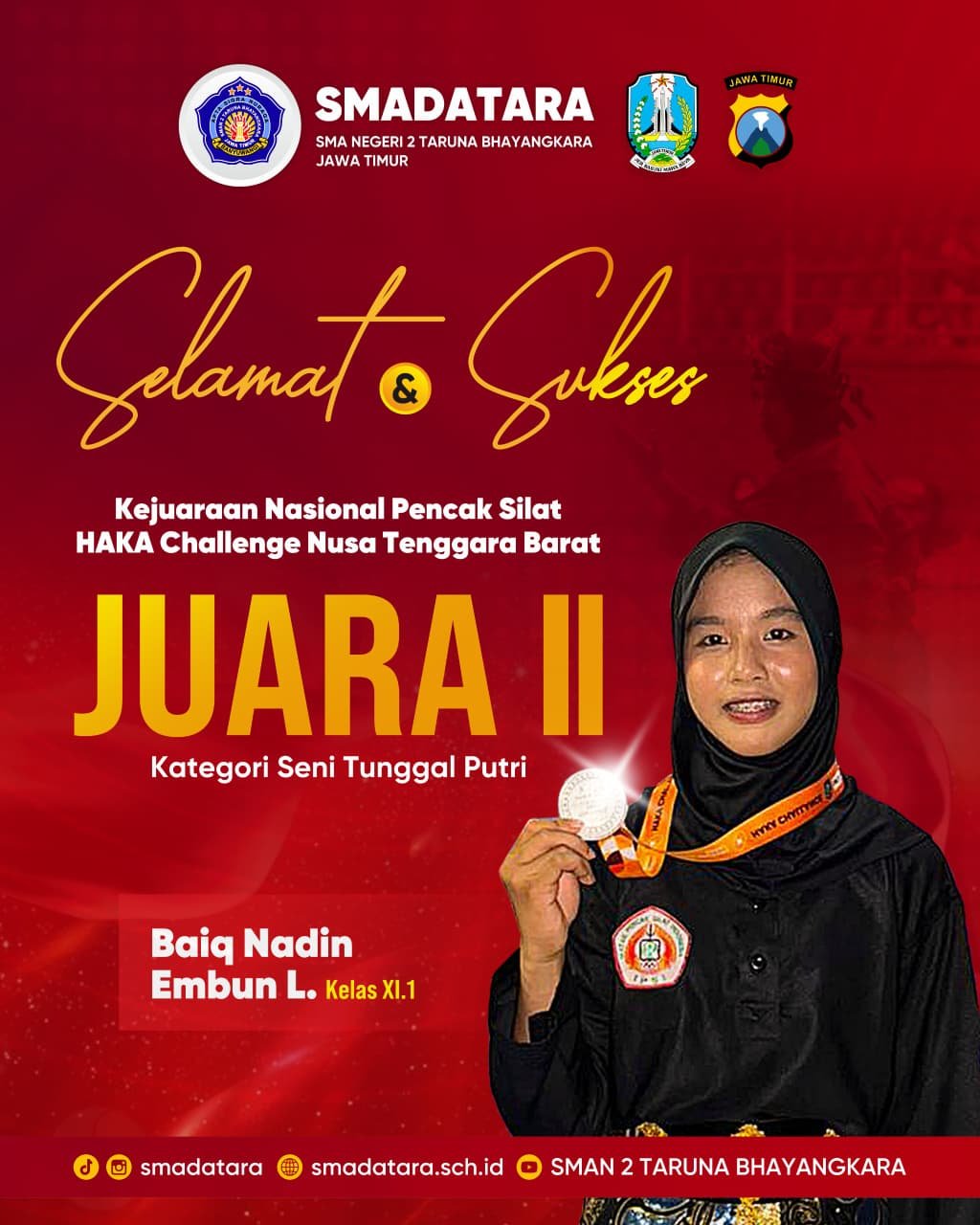 Keluarga besar SMAN 2 Taruna Bhayangkara Jawa Timur menyampaikan ucapan selamat dan apresiasi setinggi-tingginya kepada Taruni Baiq Nadin Embun atas…