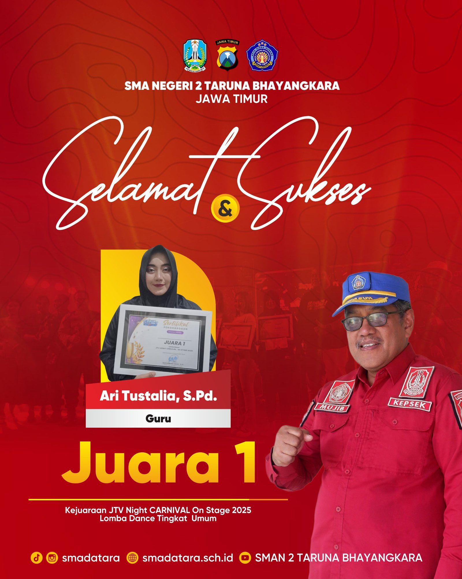 SMAN 2 Taruna Bhayangkara Sampaikan Selamat dan Sukses kepada Ibu Ari Tustalia, S.Pd. Raih Juara 1 Lomba Dance JTV Night Carnival On Stage 2025