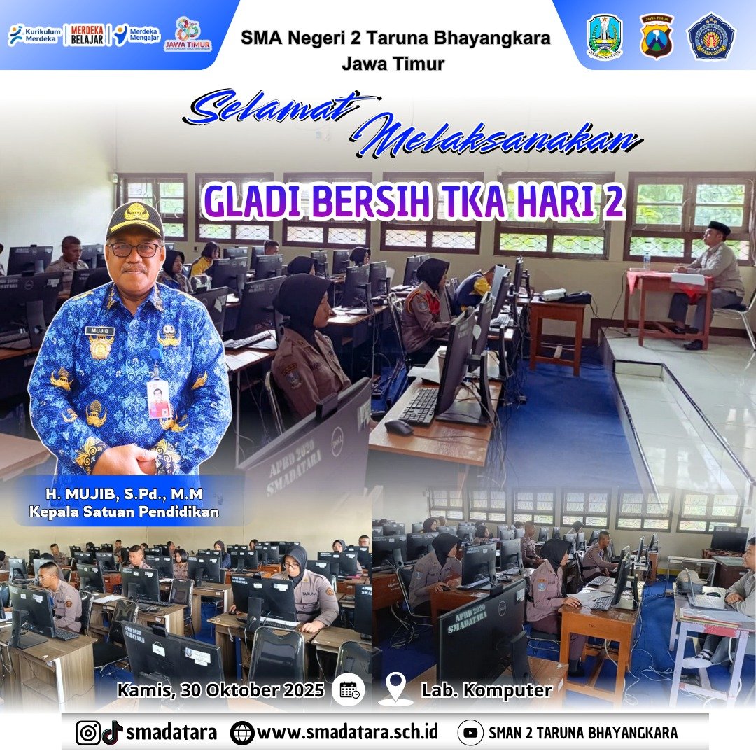Setelah sukses melaksanakan gladi bersih hari pertama, SMAN 2 Taruna Bhayangkara Jawa Timur kembali menggelar gladi bersih Tes Kemampuan Akademik…