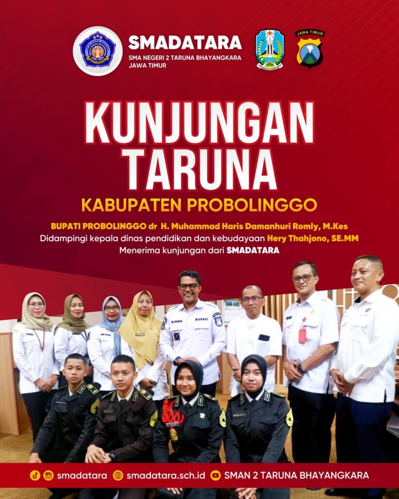 Taruna dan taruni SMAN 2 Taruna Bhayangkara Jawa Timur melaksanakan kunjungan resmi ke Kantor Pemerintah Daerah (Pemda) Kabupaten Probolinggo sebagai bagian dari upaya pengenalan Seleksi Penerimaan Murid Baru (SPMB) SMAN 2 Taruna Bhayangkara agar semakin menjangkau seluruh lapisan masyarakat.